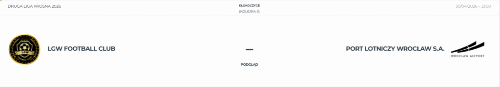 Po bardzo dobrym starcie i dwóch wygranych na inaugurację LGW Football Club w ostatnich tygodniach spisuje się już nieco gorzej i przegrał dwa kolejne spotkania. Punkty za walkower z Elbro sprawiły jednak, że LGW ma na koncie dziewięć oczek i zajmuje aktualnie piąte miejsce w tabeli. Tymczasem Port Lotniczy nie ma sobie równych i z kompletem piętnastu punktów wygodnie rozsiadł się na fotelu lidera drugiej ligi. Jeśli zawodnicy Portu ponownie zdołają wygrać, uciekną grupie pościgowej już na sześć punktów, natomiast LGW zrobi wszystko, by ponownie odnaleźć dobrą formę z początku sezonu i zaskoczyć lidera.